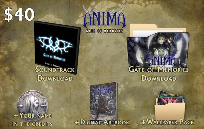 Prior to the game is release you will receive an exclusive digital art book of Anima Gate of Memories. Plus you will also get your name in the credits and the package of HD computer wallpapers.