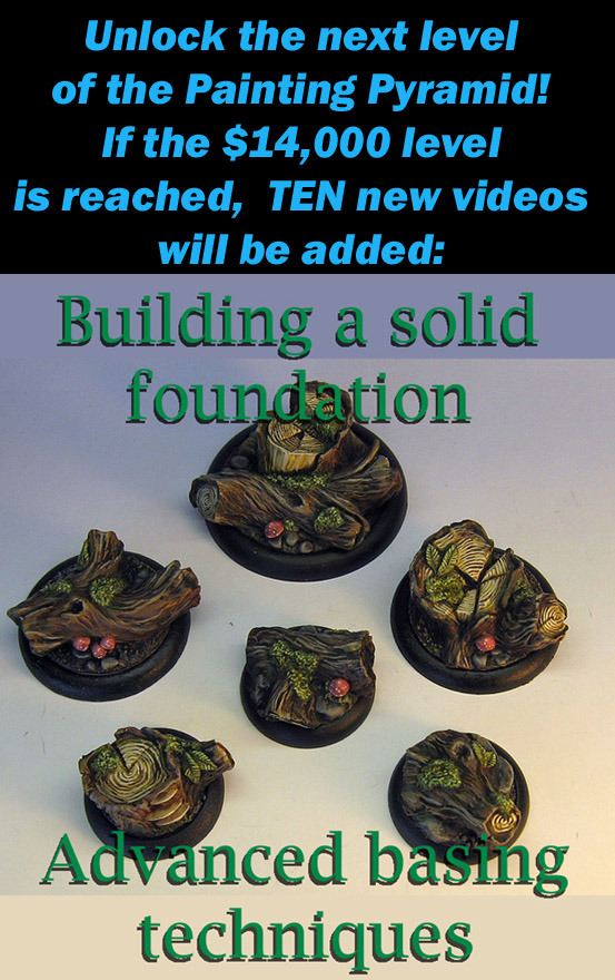 I see that it is time to announce another stretch goal! At the $20,000 level, I will add new videos on painting large creatures and terrain building, as well as the introduction of new pledge levels... including all digital!!