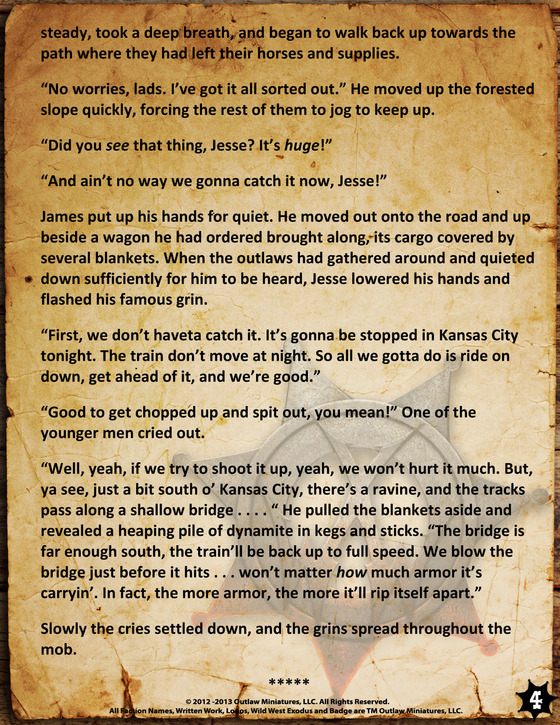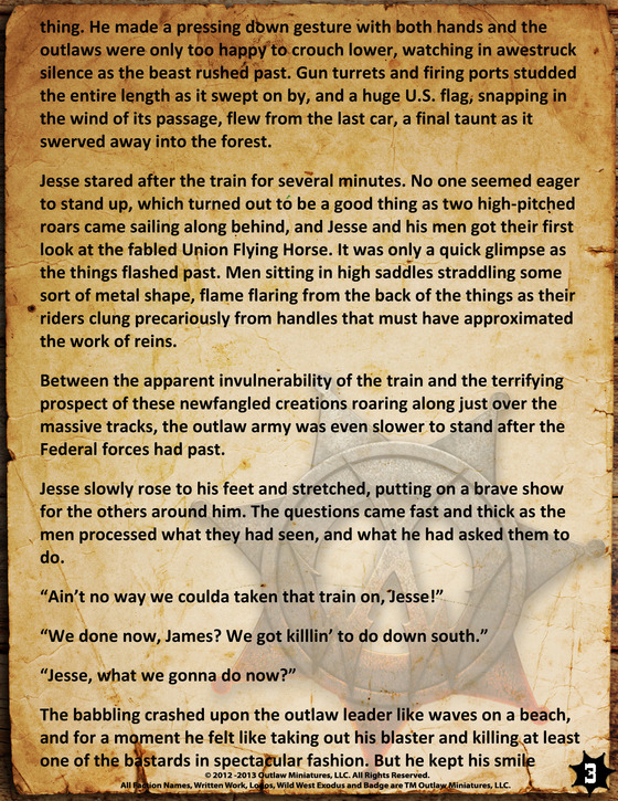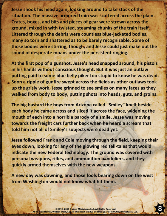 Hello everyone. We thought we would give you a special treat today with some of Craig Gallant's writing. Craig is the official Wild West Exodus writer and has put in countless hours of work on the 200 plus pages of fluff coming out in the Rule Book.