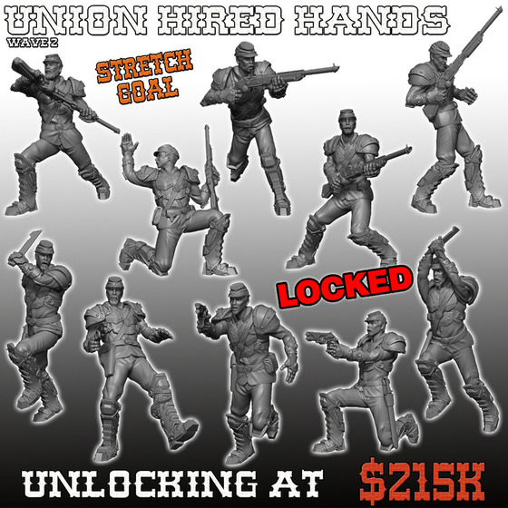 With the $215k goal quickly approaching we figured it would be time to show you the additional hired hands. This box will feature the same load out but with heavier armor. Each 10 man box will have 5 close combat and 5 long range hired hands.